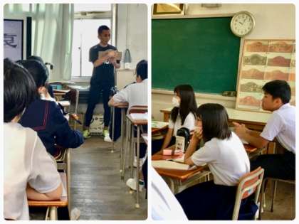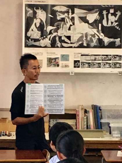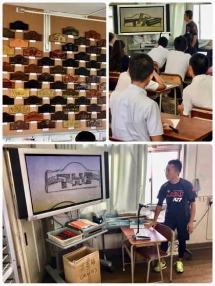 2年3組の美術の授業です。担当の増田先生が、レタリングからデザインへとお話していました。ICTを活用して授業進度や理解がスムーズになったと伺いました。