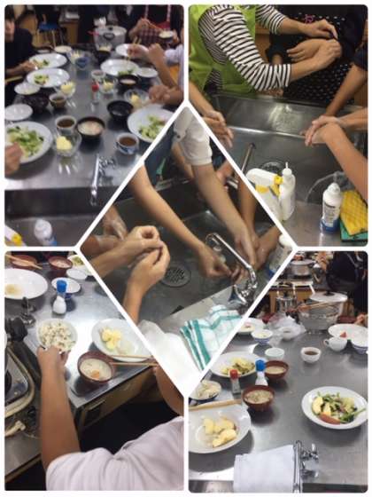 いよいよ調理実習の始まりです。手を綺麗に洗って実習開始です!