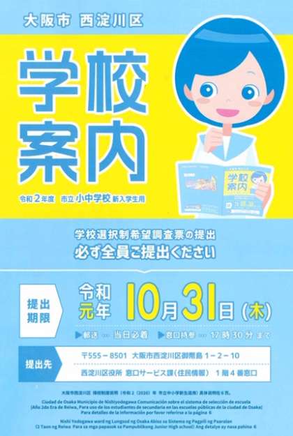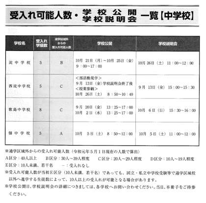 校区外の小学6年生の児童・保護者の方で、参観ご希望の方、学校説明会に参加の方は、西淀川区役所から配布された「学校案内」の冊子をお持ちください。