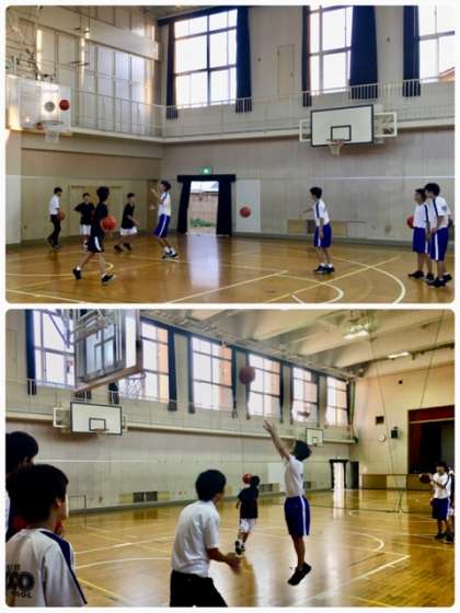 土曜日の午後後半の部活動です。体育館では、男女バスケットボール部が活動していました。顧問の鹿島先生、櫻野先生も、生徒に交わりプレーしていました。