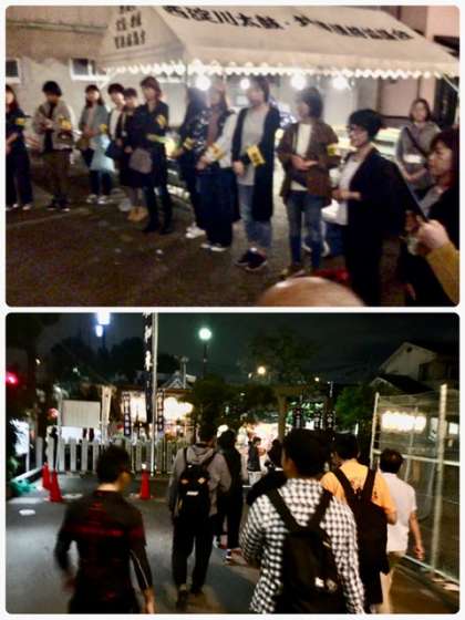 今日は、川北地区の五社神社の秋の祭礼です。川北小学校PTAと淀中学校PTAの合同巡視を行いました。