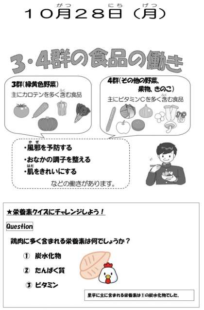 新しい週が始まりました。10月もあと3日ですね。食欲の秋です!しっかり噛んで給食を食べましょう。