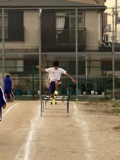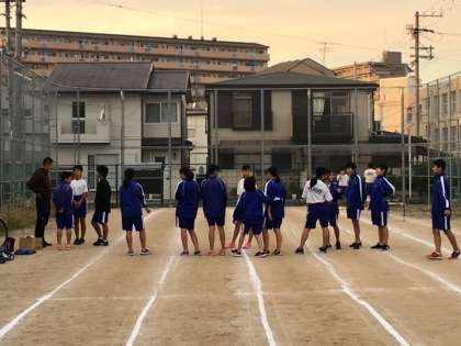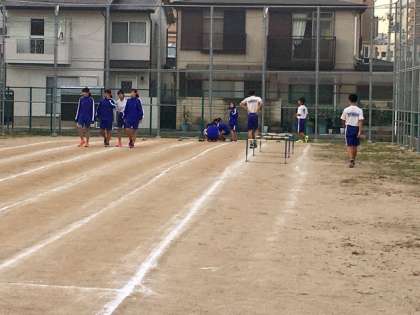 放課後、第2グランドでは陸上部が練習していました。校舎建て替え工事のためグランドが狭く、第2グランドを有効に活用しています。