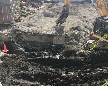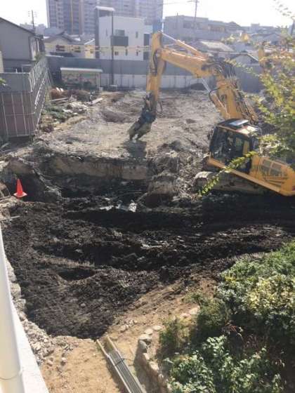 第1校舎の基礎部分を取り除く工事が行われています。
