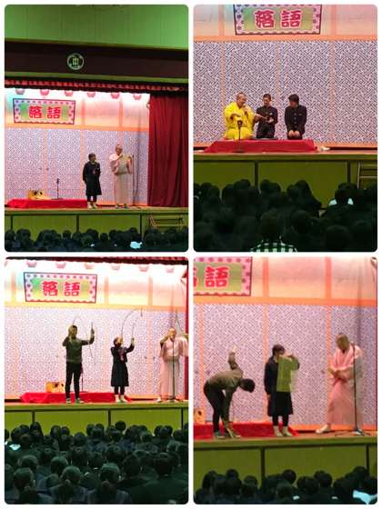 本日、5.6限目に体育館で芸術鑑賞「おもしろ落語鑑賞会」が開催されました。