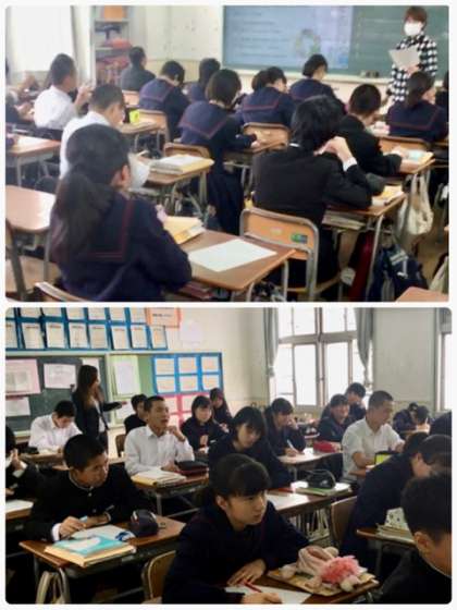 2年4組数学の授業は出来島小学校の日比先生が、2年3組英語の授業は、川北小学校山岡先生が参観してくださいました。