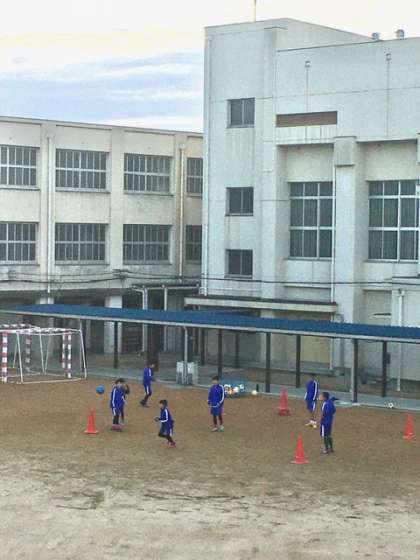 淀中学校のグラウンドでは、サッカー部の生徒が寒さに負けず朝練をしています。元気を頂戴しました!今日も一日頑張りましょう!