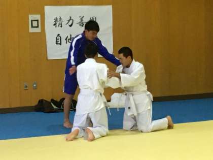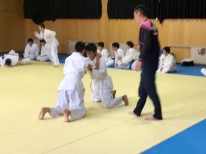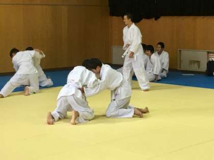 2年男子は柔道を学習しています。男子生徒が柔道着を着てたので、「かっこいいねぇ!柔道は楽しいですか?」と聞くと、「ハイ!楽しいです!」と返事をくれました。