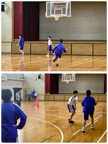 体育館では、男子バスケットボール部が練習に励んでいました。