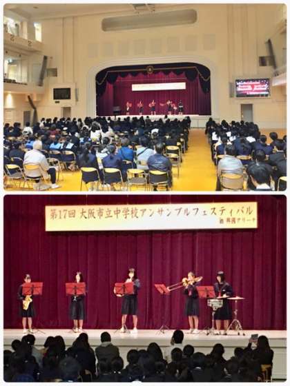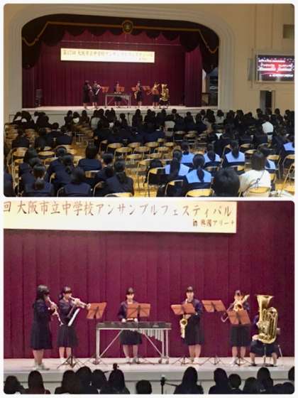 12月7日(土)音楽部は、興国高等学校アリーナでは開催された・大阪市立中学校文化連盟音楽部主催の「第17回大阪市立中学校アンサンブルフェスティバル」に出演しました。