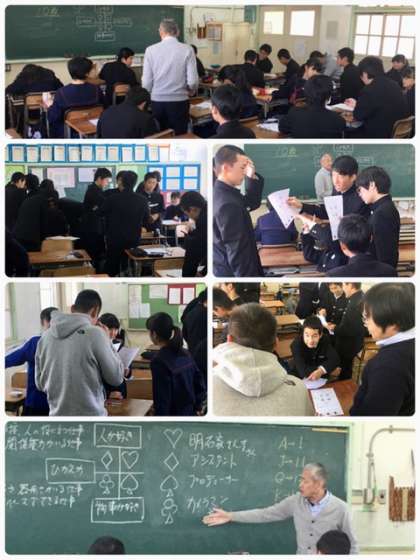 今日の出前授業は、自分自身を理解して進路選択の主体性の確立を図る学習と、他者理解する態度を学ぶものです。