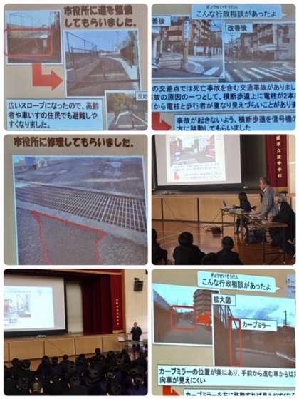 川北連合町会長の市山博重様、大和田連合町会長の田中文雄様のお二人です。それぞれの行政相談員さんから校区内の改善例を具体的に教えていただきました。学校からは、通用門の安全を守るための支援をお願いしました。