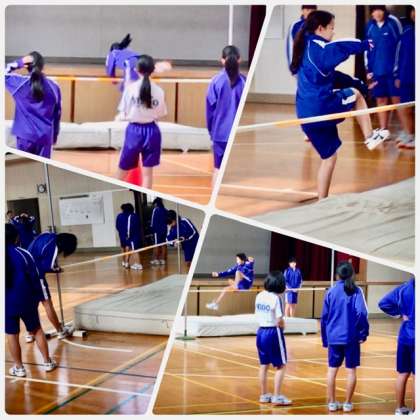 2年1組・2組の体育の授業です。女子は走り高跳を学習していました。それぞれの課題を克服するために努力していました。