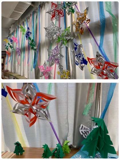 補助員の北山先生がクリスマスツリーを作って下さいました。図書室はクリスマスムード一に包まれています。新しい図書も入りました。ぜひ図書室に来て下さい。