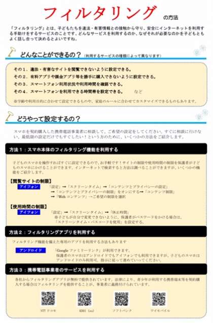 つきましては、チラシをごらんいただき、本趣旨を踏まえ、保護者とともに児童生徒の 安全・ 安心なインターネット利用に努めていただきますようお願いし ます。