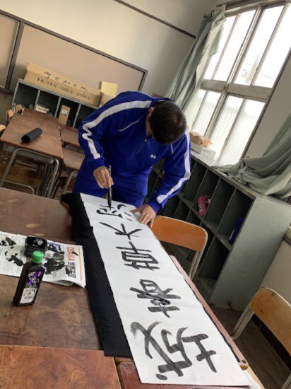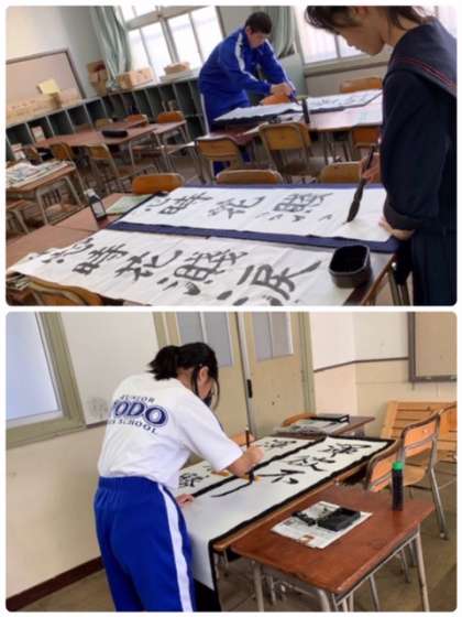 今日はドリームの書初めです。杜甫の「春望」をみんなで分書しました。律詩はまだ未完成ですが、頑張って作品にしました。年末の篆刻教室に参加した人は、落款印を押しました。