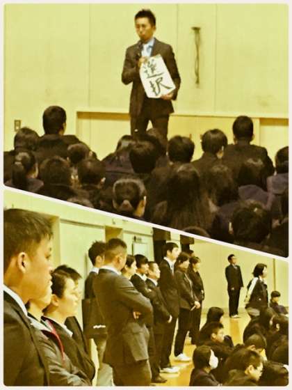 生徒指導主事の増田先生からは、書き初めを示してお話しくださいました。新年の書き初めは「選択」です。二学期末の命を守る授業でもお話しくださいました。それぞれの生徒のみなさんが正しい選択をするようにしましょう。