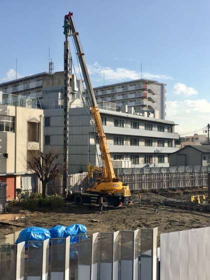 校舎建て替え工事も再開されました。旧校舎解体工事のような大きな振動や騒音もありません。工事は基礎部分の工事に移っています。