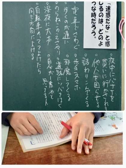 2年1組の道徳の授業です。読み物教材「迷惑とは何ぞ」を使用して学習していきます。