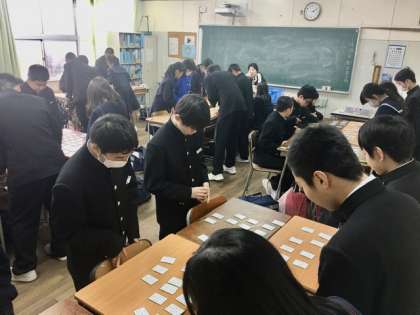 この機会に、ご家族でも百人一首に挑戦してください。生徒たちのがんばりが見られます。