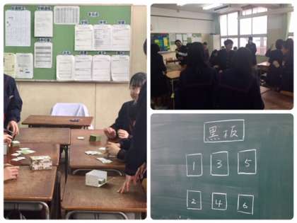 生徒は日に日に和歌を覚えて、上の句を聞いたら、下の句の書かれた札を取れる生徒が増えました。4組で佐賀先生に話を伺うと、ある班は、予選で一回も負けてないですと教えてくださいました。