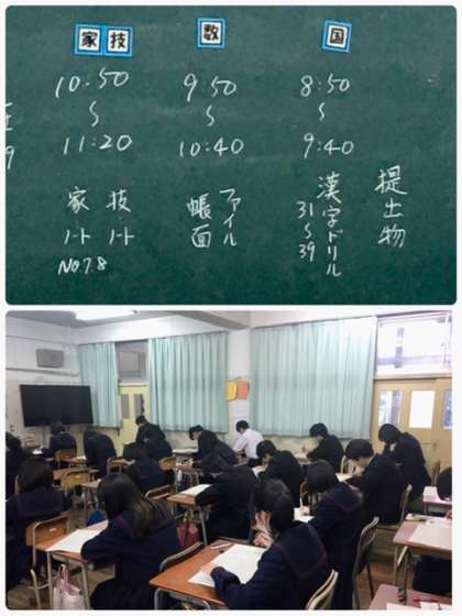 学年末テストは明日までとなります。3年生は明日、私立高校への出願を予定しています。明日は昼食を取って出席しますが、一部の高校へは郵送であったり、昼食を取らずに出願したりします。