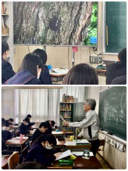 授業の後半は、導入の話に沿ったまとめのプリントに取り組みました。電子黒板でNHKのビデオを見せてくださいましたが、教科書よりずいぶんリアルでわかりやすかったです。