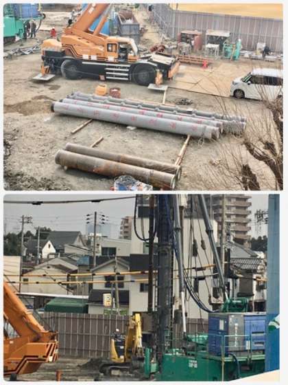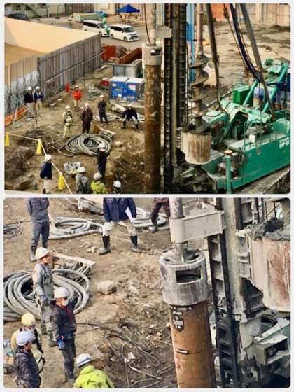 校舎建て替え工事の様子です。杭打ちが本格的にはじまりました。とにかくすごいですねー。じっと見とれてしまいます。