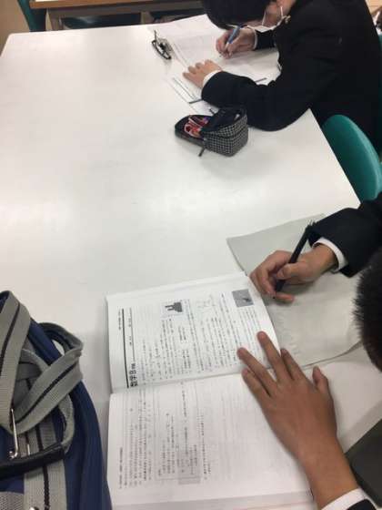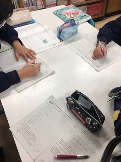3年生の私立高校等の入試まで、あと1週間となりました。放課後の図書室では、ラストスパートをかける三年生が頑張っていました。