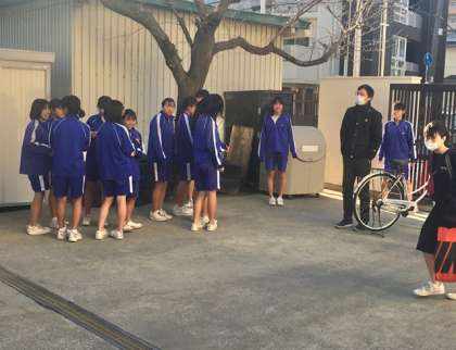 本日、放課後に運動部の生徒たちがマラソン大会の準備のため大野川緑陰道路に行きました。ありがとうございます。
