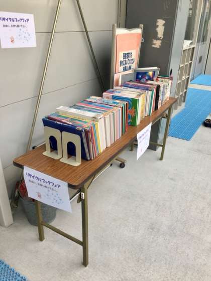 受付、待合室の図書室前では、臨時のリサイクルブックフェアを開催しています。