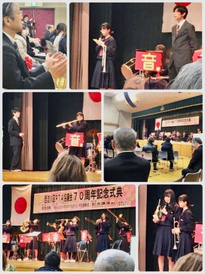 音楽部のみなさんは、西淀川区民ホールで開催された「西淀川区PTA協議会70周年記念式典」のオープニング演奏にお招きいただきました。