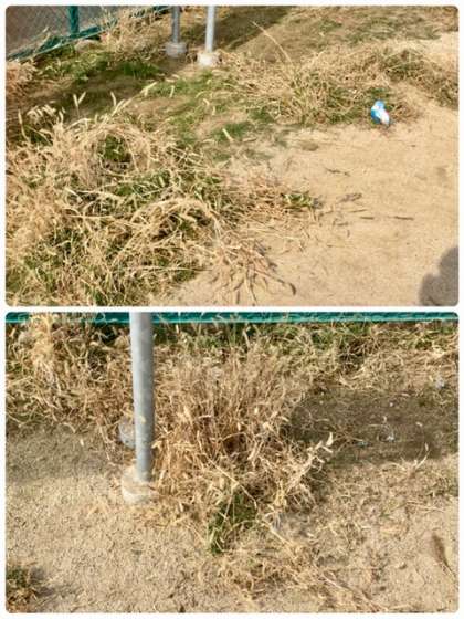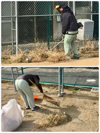 第2グラウンド周辺の除草作業を管理作業員さんが行いました。校舎建て替え工事で運動場が狭くなったため、地域からお借りして部活動や体育の授業で使用させていただきいます。