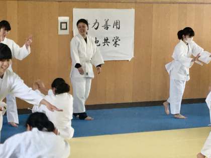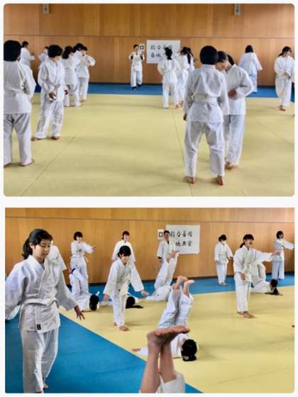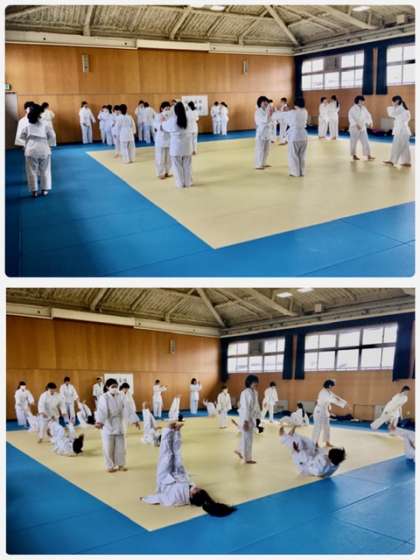 武道場の横を通っていたら、柔道の受け身をしている音が聞こえてきました。2年女子体育の授業です。