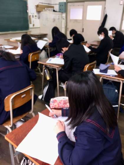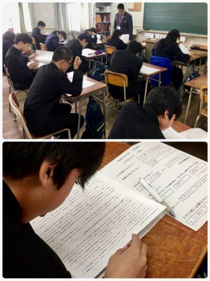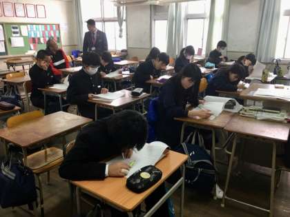 他の教室とは少し違う雰囲気です。大学進学入門講座では、生徒は真剣な面持ちで問題に取り組んでいます。講師は興国高等学校の中本駿平先生です。