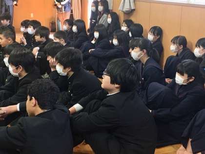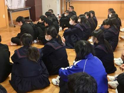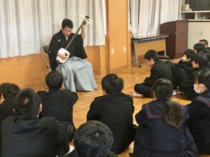 6時間目は、1年1組と2組が津軽三味線の出前授業を受けました。繊細で迫力ある演奏に思わず引き込まれます。