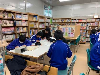 図書室は今日も満員でした。テスト対策をする1、2年生。公立高校出願の自己申告書に取り組む3年生。みんな健康第一で頑張って下さい。