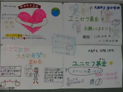 今週月曜日より、生徒会の活動としてユニセフ募金運動を行っています。