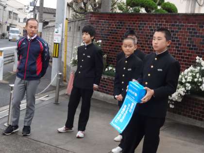 毎朝、正門と裏門前に立ち、募金をお願いしています。