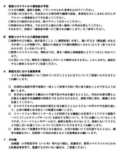 新型コロナウイルス感染症の拡大予防に向けた学校休業ついて(お知らせ)