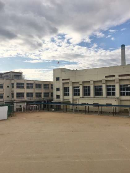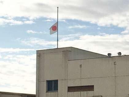 淀中学校では、半旗掲揚し被災時刻に黙祷をあげます。