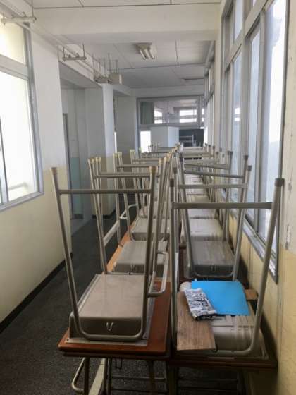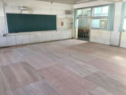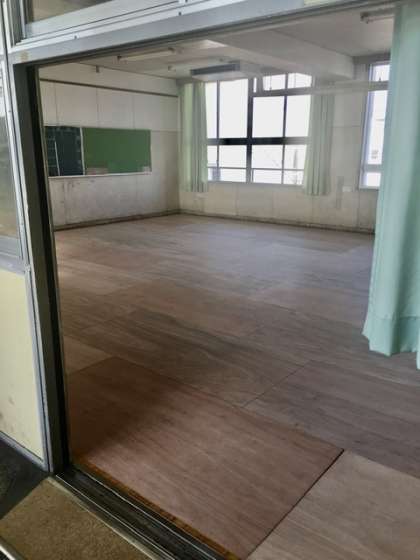 夏休みに続いて、旧3年3・4組の床の張り替え工事を行なっています。新学期には快適な教室になります。