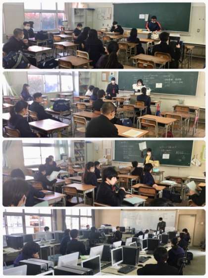 明日は、修了式を予定しています。8時45分までに、今日の教室に登校してください。放送で修了式を行います。また、今年度末に異動・退職される教職員からお別れの言葉をいただく予定です。