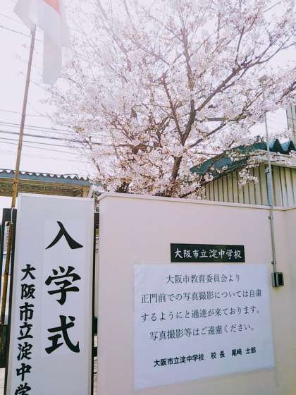 満開の「淀桜」、朝は少し肌寒かった気温もぐんぐん上昇し、最高の入学式になりました。今年は143名の新1年生が淀中生の仲間入りです。