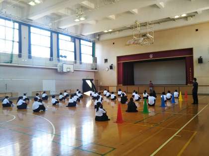 1年生は体育館で学年の先生から新入生としての心構えを聞きました。また、聴力検査も実施しました。