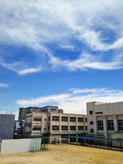 日差しは強くて暑いですが、校舎の陰に入ると爽やかな風が吹いてきます。