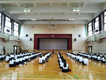集会では他にもマスクのことなどいろいろな話がありましたが、生徒たちは「目で、耳で、心で聴いていました」