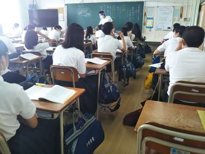 今日は2年生のあるクラスで、『君、想像したことある?』という作品を読んで、「いじめ」について考えていました。