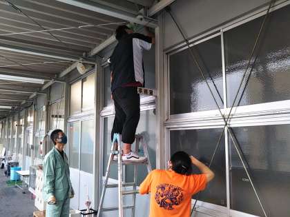 本校は校舎建築のため、現在の管理棟はプレハブ校舎です。