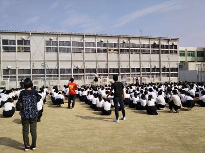 今までなら当たり前のようにおこなわれていた全校集会。6月から学校は再開されたものの、1年生から3年生まで生徒みんなが集まったのは今日が最初です。